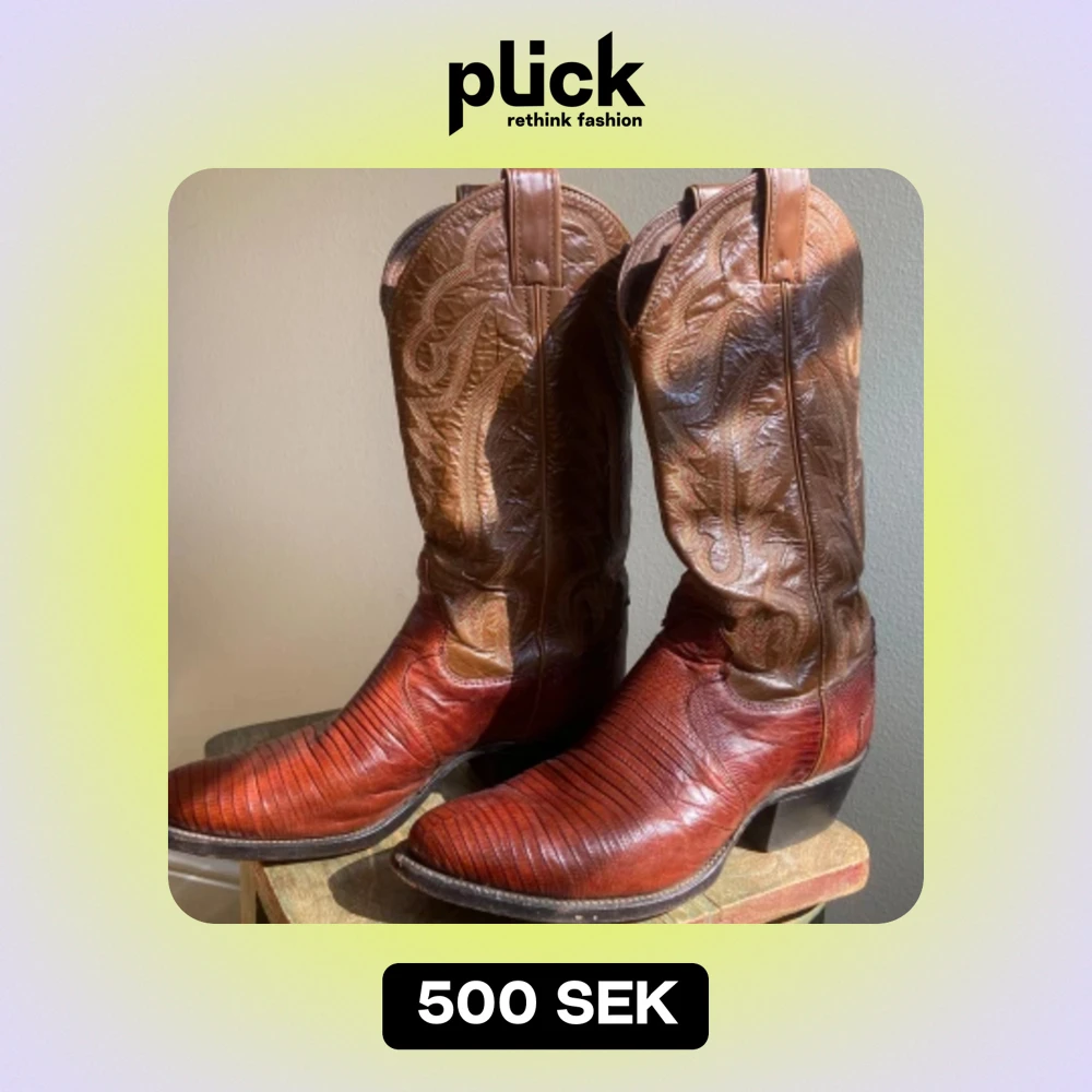supersnygga cowboy boots köpta på vintage store, står ”Justin” på dem och storlek 7d