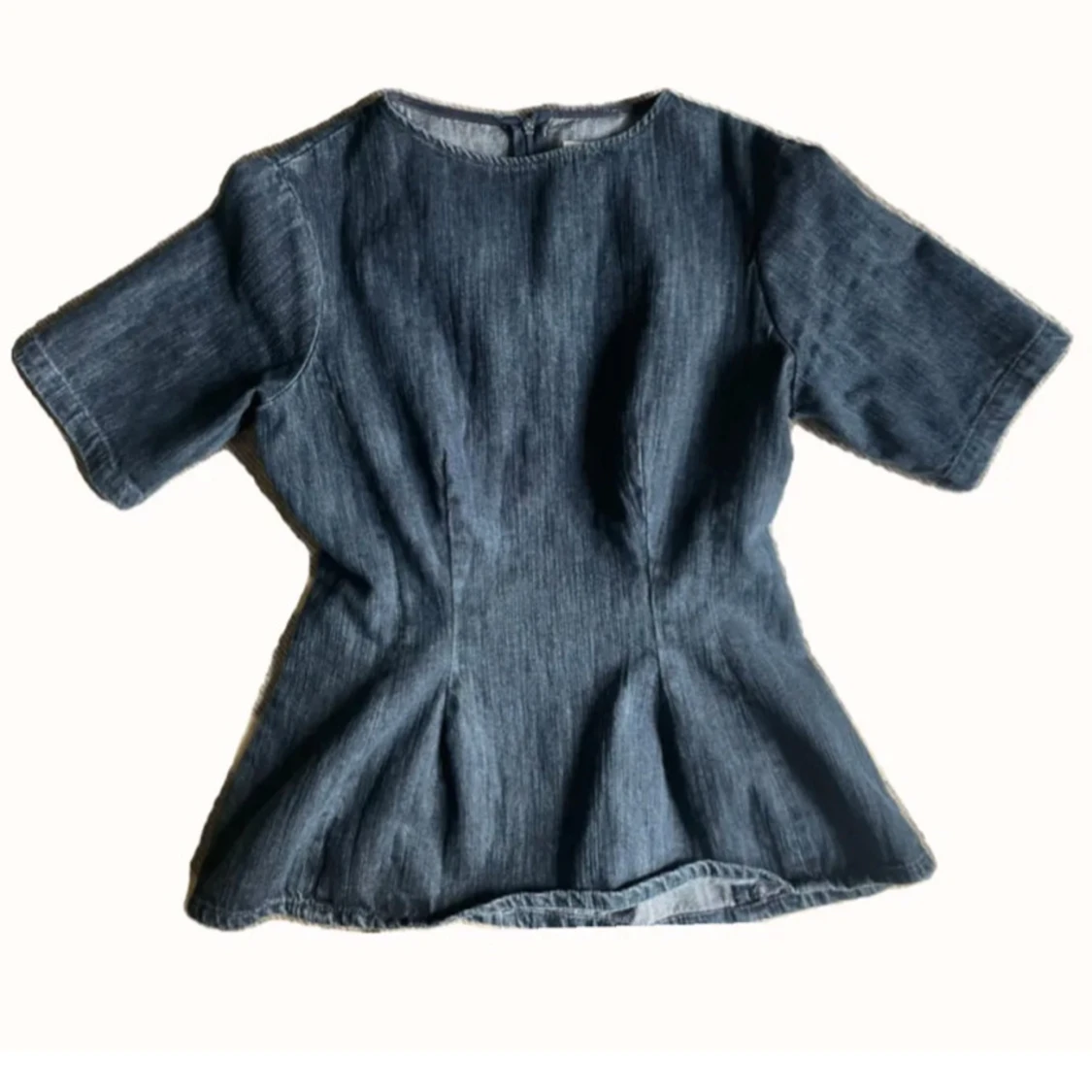 Snygg blå jeansblus med korta ärmar och en figursydd passform. Perfekt för en avslappnad men stilren look. Blusen har en enkel design som gör den lätt att matcha med olika outfits.Från zara helt ny, L men sitter lite tajtare