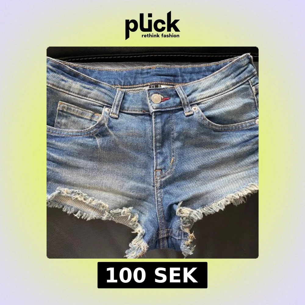 Snygga blå jeansshorts med fransiga kanter och klassisk femficksdesign. Shortsen har låg midja . 36 cm mätt rakt över