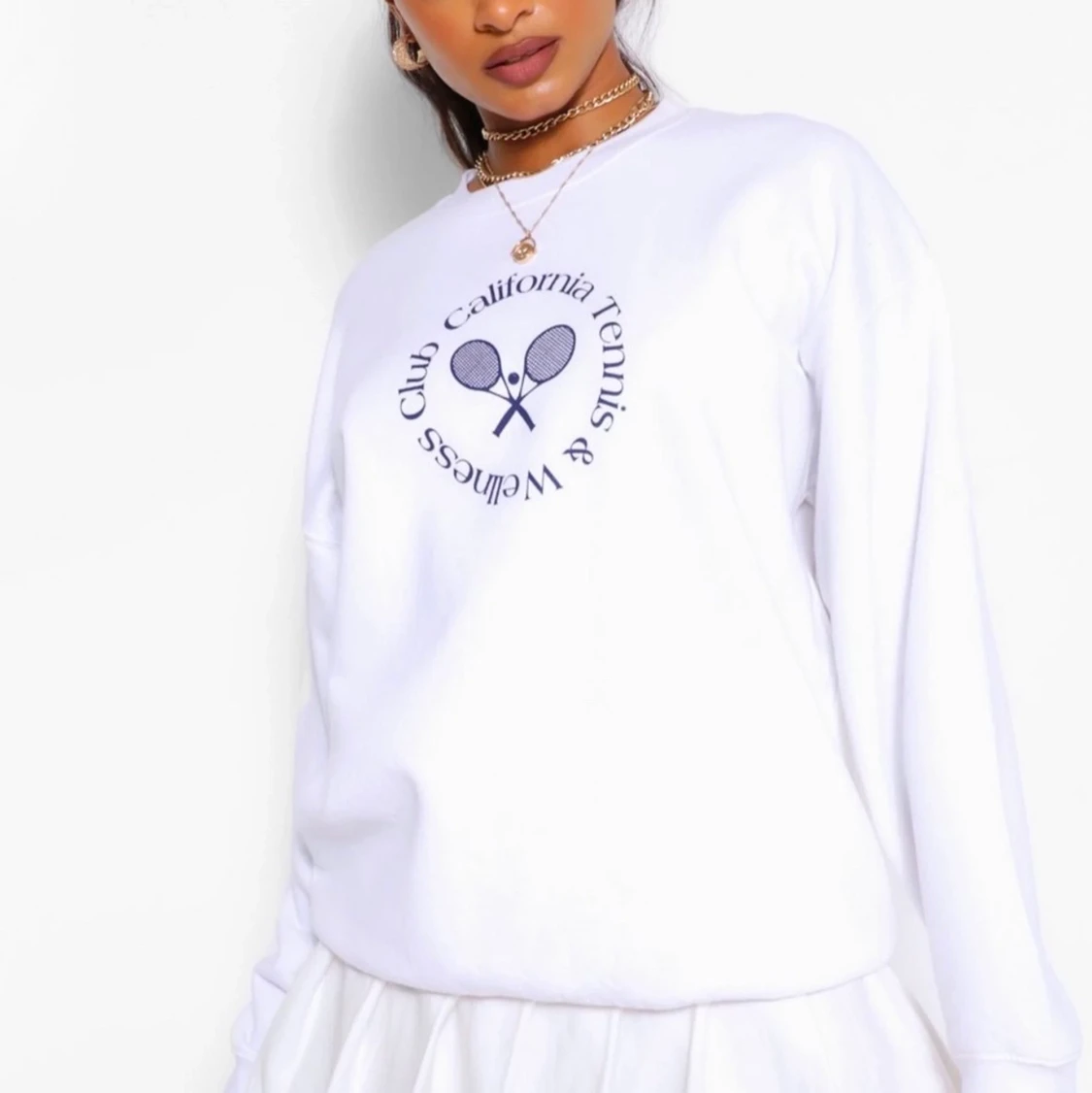 Populär college sweatshirt från Boohoo, slutsåld på hemsidan. Nyköpt och helt oanvänd passar ca XS-L