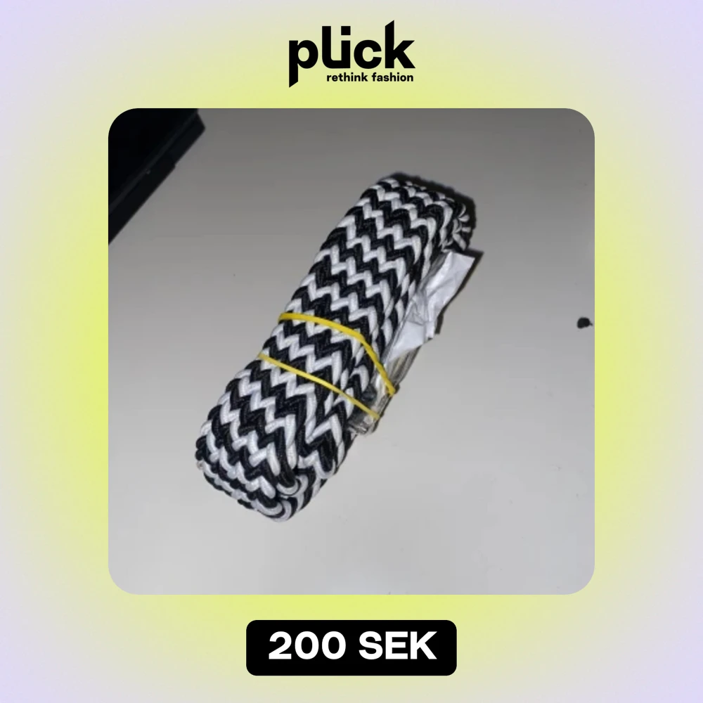 Bältet är i svart och vit randig mönster och är skitsnygg. Bältet är just nu inplastat och ihop satt med en gummisnodd. Vill man ha fler bilder skriv till mig!