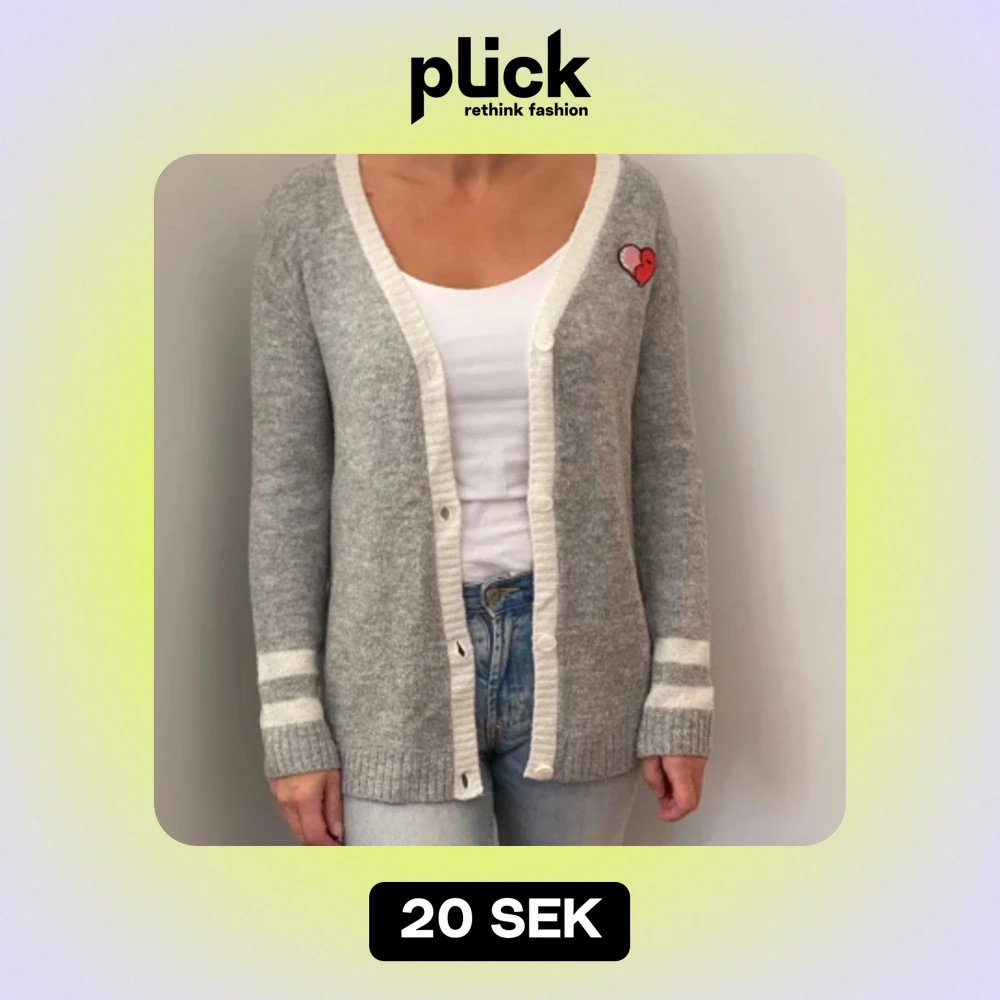 Mysig grå kofta från H&M med vita detaljer och ett sött hjärta på bröstet. Perfekt för höst och vinter! Den har långa ärmar och knappar framtill. Superfin att ha över en t-shirt eller linne. 🩶