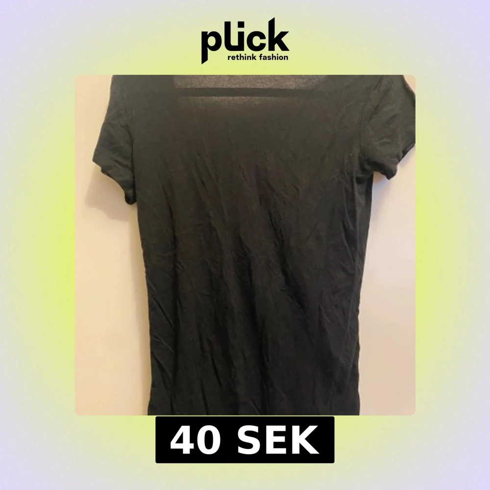 Säljer en stilren svart t-shirt med djup v-ringning. Perfekt för en avslappnad look. Kortärmad och i ett mjukt material som känns skönt mot huden. Den är öppen i ryggen jätte fin från lager 157