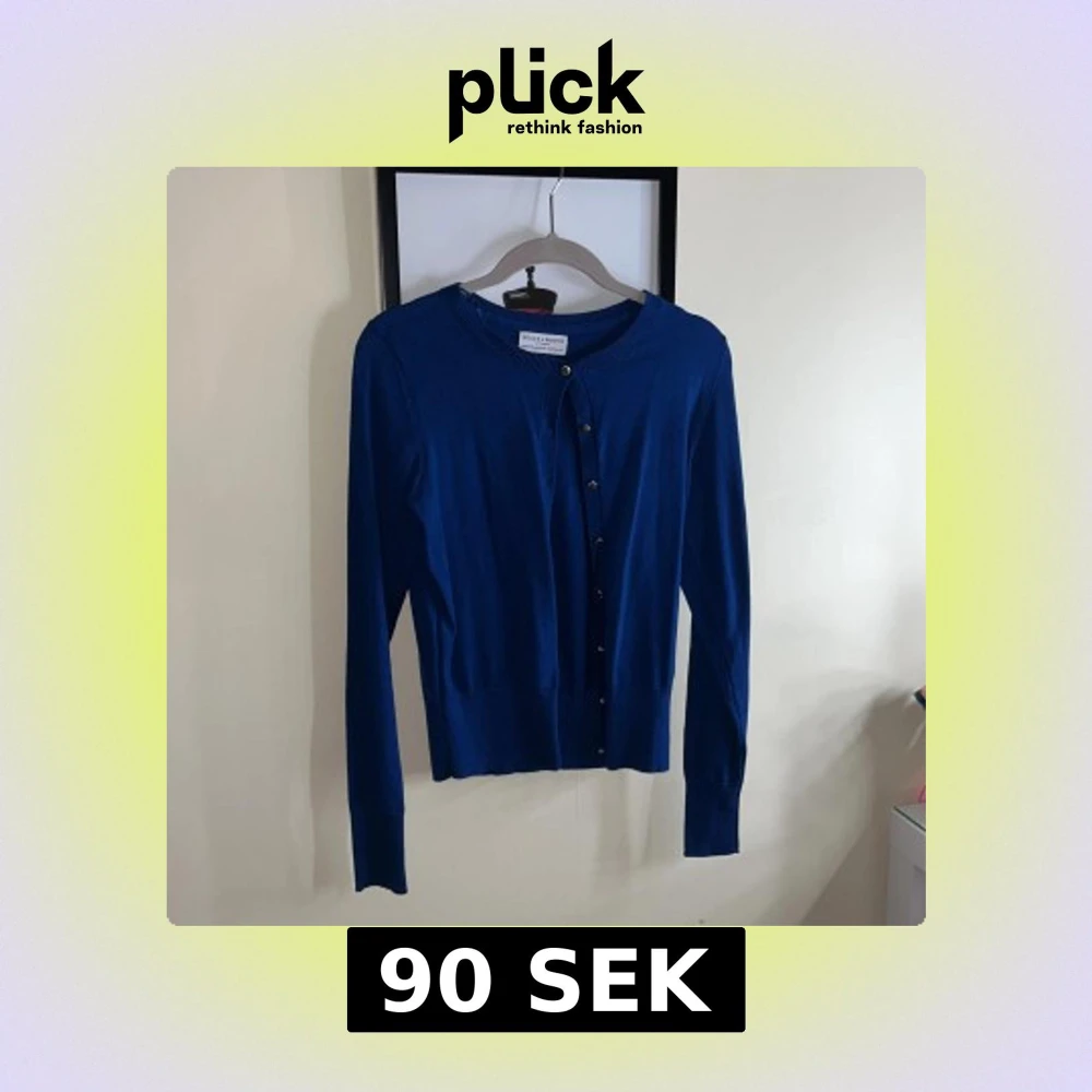 Snygg blå kofta från Holly & Whyte by Lindex med knappar framtill. Perfekt för lager-på-lager och att hålla sig varm under kyligare dagar. Klassisk design med ribbade kanter. Guld knappar.