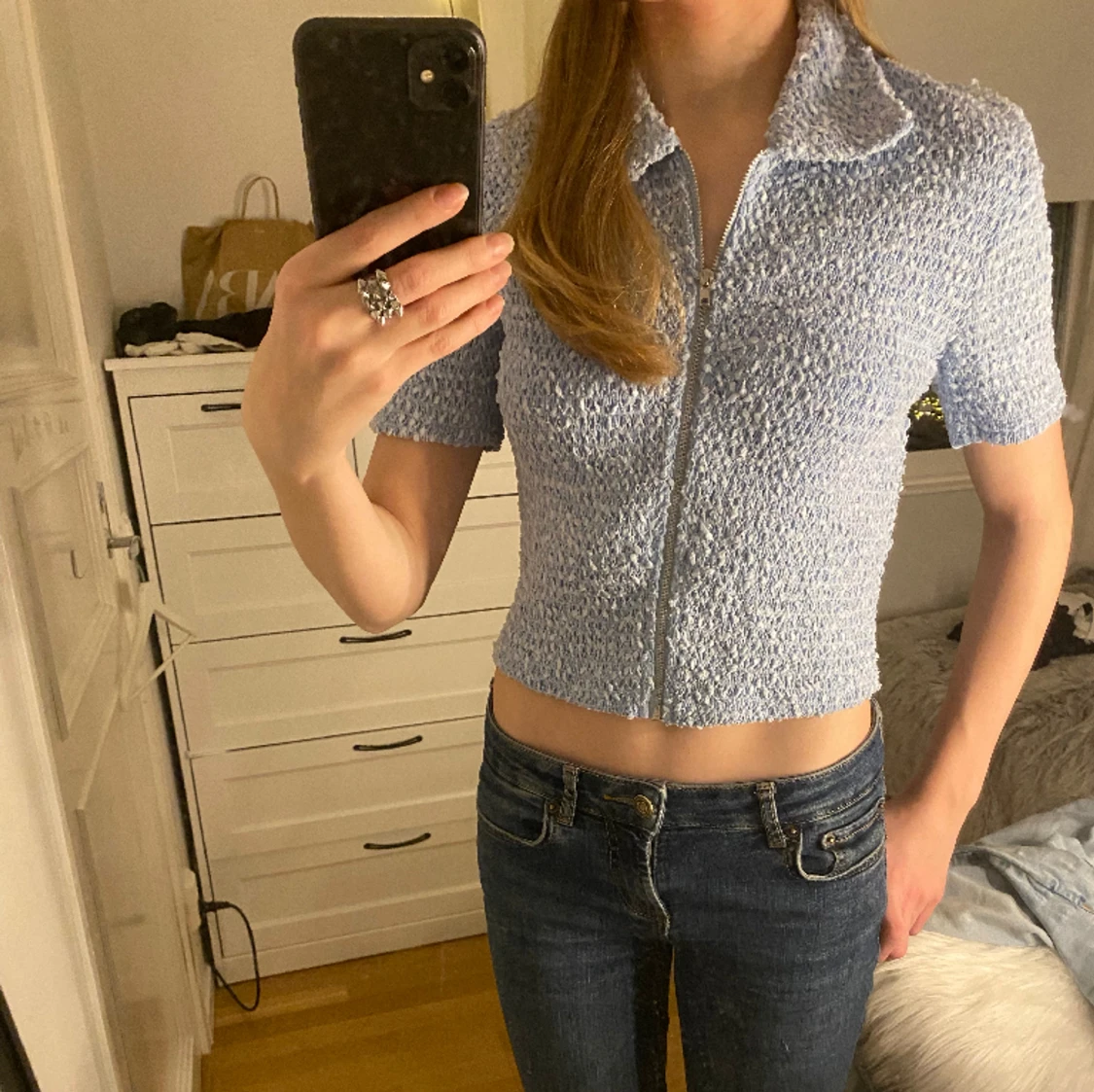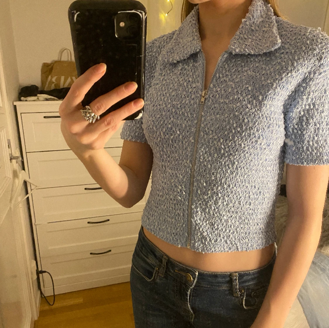 En blå kortärmad söt top med dragkedja som är helt oanvänd. Köpt på New Yorker för 200kr