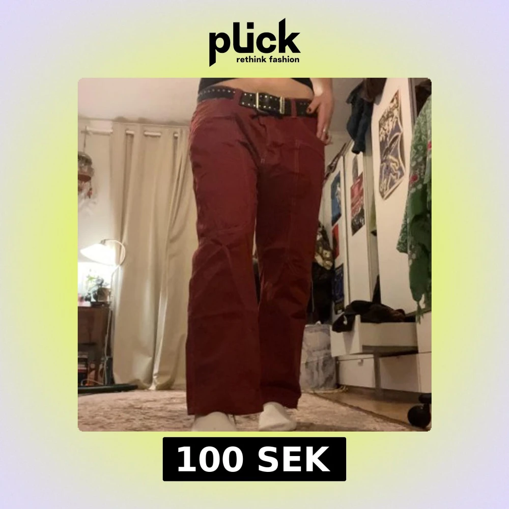 Röda cargo jeans - Röda cargo jeans med fickor fram, bak och vid låren! Storlek Large. Är köpta från Shein, vill sälja dem eftetsom dem är inte min stil. Man får betala frakten själv<3 Har använt dem typ 4 gånger