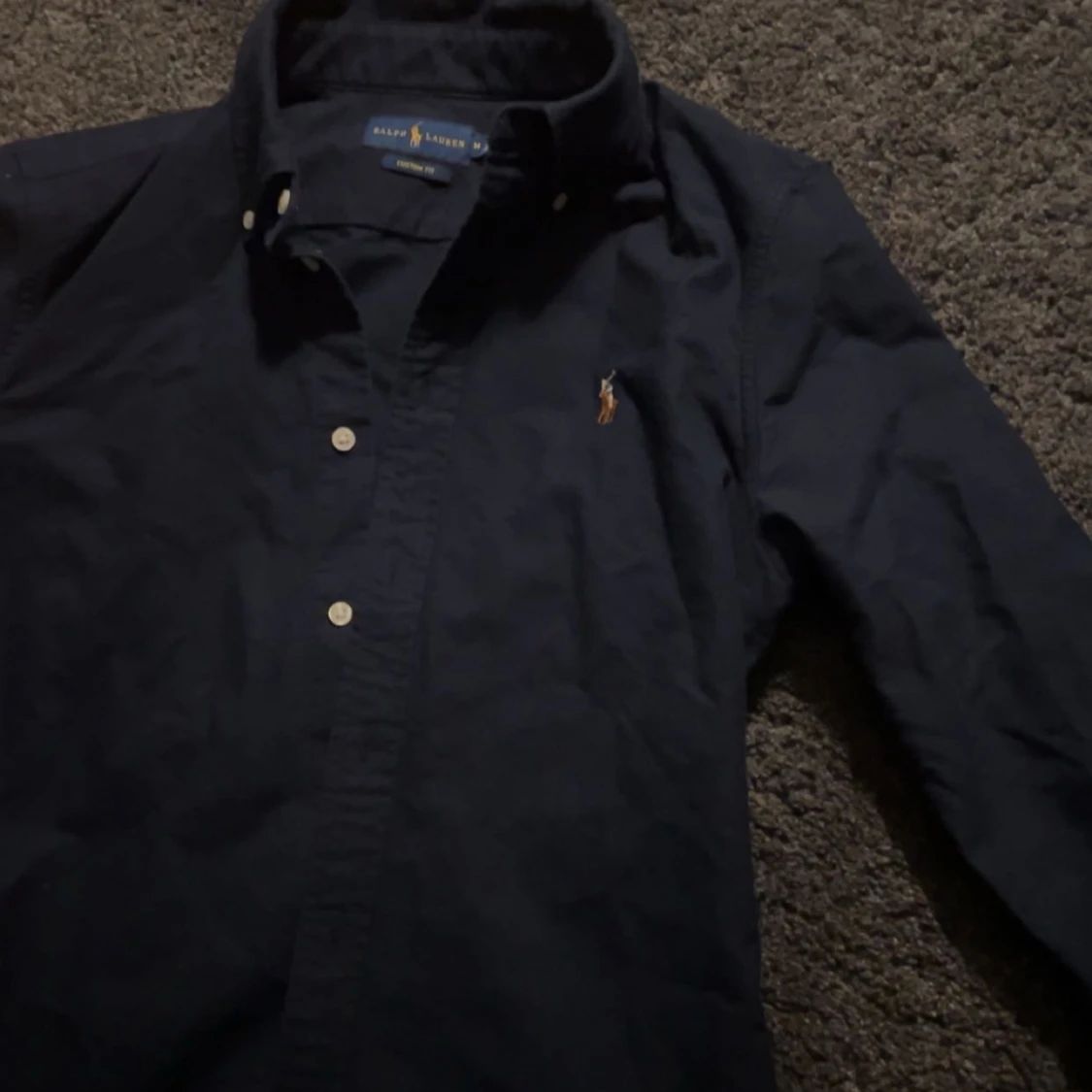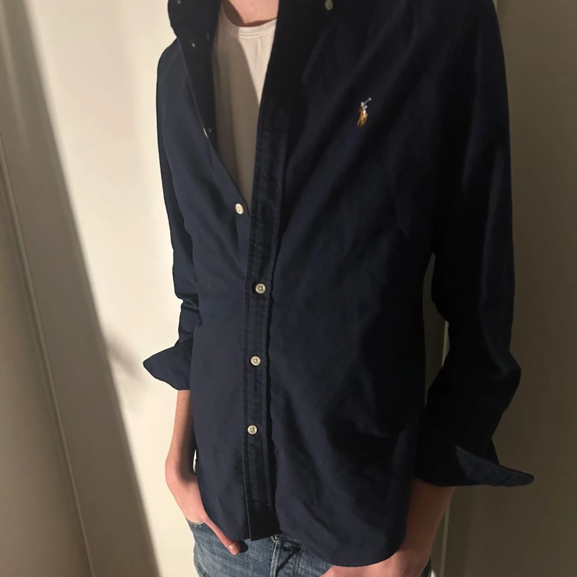 stilren mörkblå skjorta från Ralph Lauren riktigt fet till sommar/vår, i storlek M, köpt i sommras men varsamt använt.