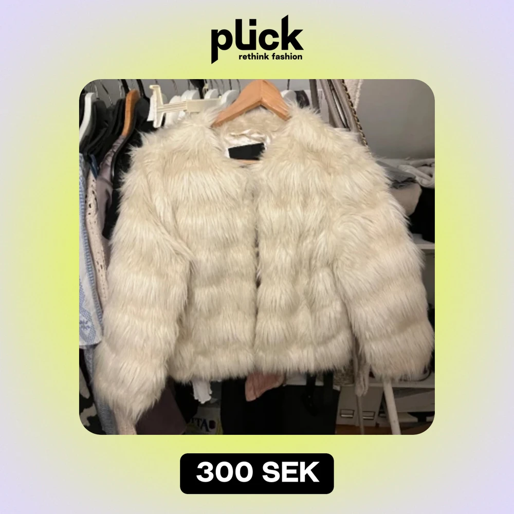 ljus croppad pälsjacka med kortare ärmar som fint visar smyckena, perfekt över en festtopp! 💖tryck gärna köp nu!💖