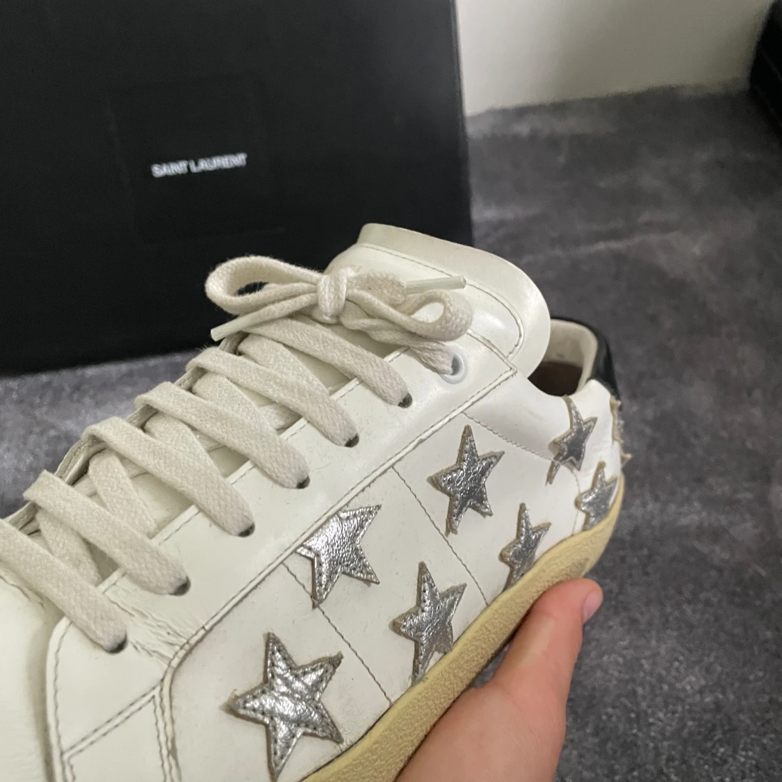 Tjena! Säljer nu dessa snygga Saint Laurent skorna som passar perfekt nu till sommaren! Skorna är i storlek 44. Skicket på skorna är 9,5, grymt bra skick. Till skorna tillkommer original boxen. Nypris: ~7000kr. Självklart äkta! Hör av er vid frågor🙌🥂