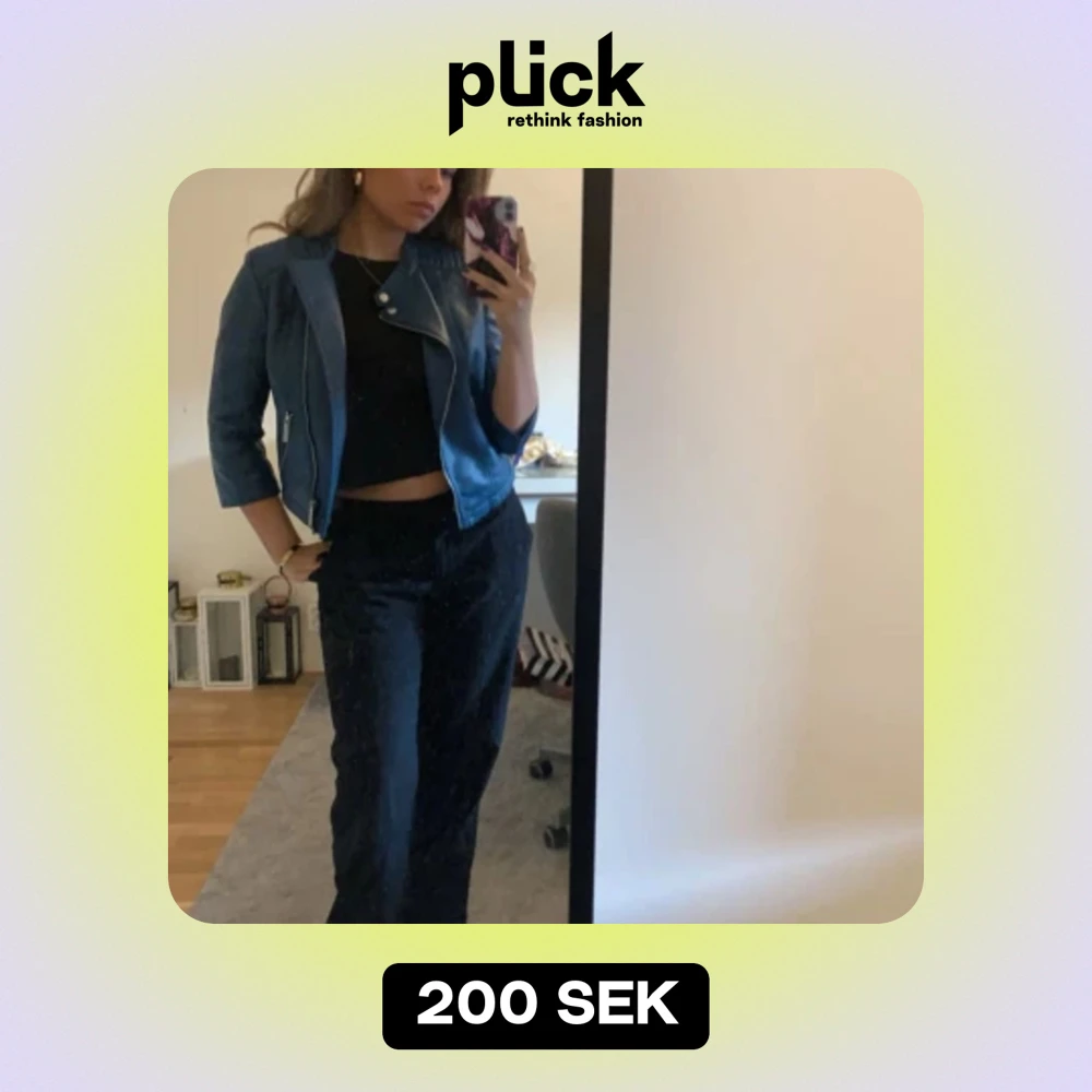 Trekvartsärmad blå skinn jacka från only. Använd en gång.