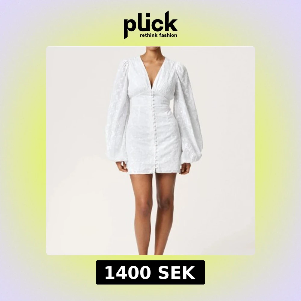 Supersöt vit kortklänning från Adoore med v-ringning, långa puffärmar och knappar framtill. Aldrig använd med lapparna kvar och kommer med en extra knapp. Nypris 1495kr