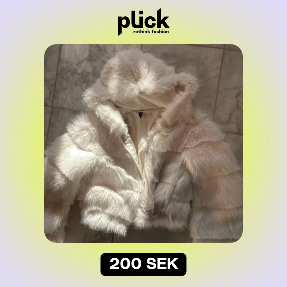 Superfin vit jacka i pälsliknande material i nyskick storlek s, aldrig använd💕 (ganska tunt material så perfekt till våren! 🌟)