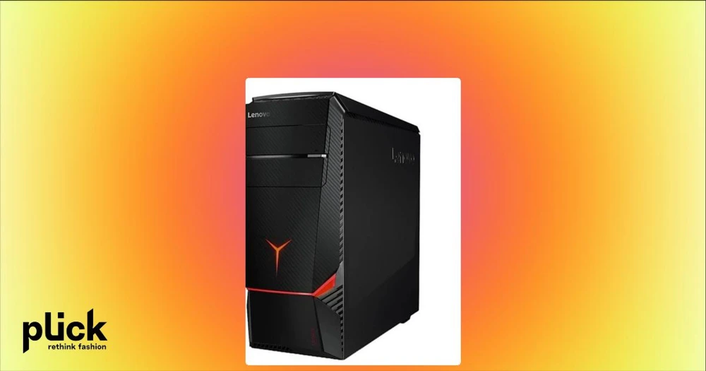Lenovo Legion stationär gamingdator - Säljer en svart Lenovo Legion stationär dator med coola röda LED-detaljer på fronten. Chassit har en futuristisk design med vinklade kanter och kolfiberliknande yta. Perfekt för gaming eller tunga program. Märket syns tydligt på sidan och fronten.