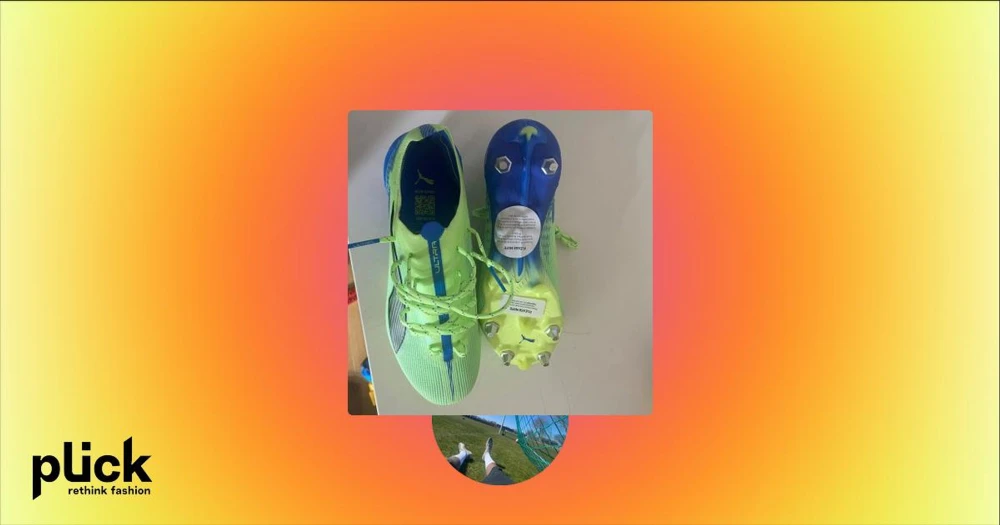Puma Ultra fotbollsskor i neonfärg - Säljer ett par Puma Ultra fotbollsskor i neonljusgrön och blå färg med svarta detaljer. Skorna har snörning och metall-dobbar för bästa grepp på planen. Perfekta för dig som vill sticka ut på fotbollsplanen!