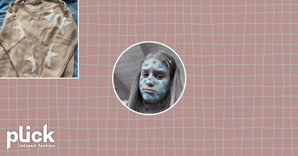 Aprikos stickad tröja med vita stjärnor  - Säljer pga fel storlek. Nypris 129