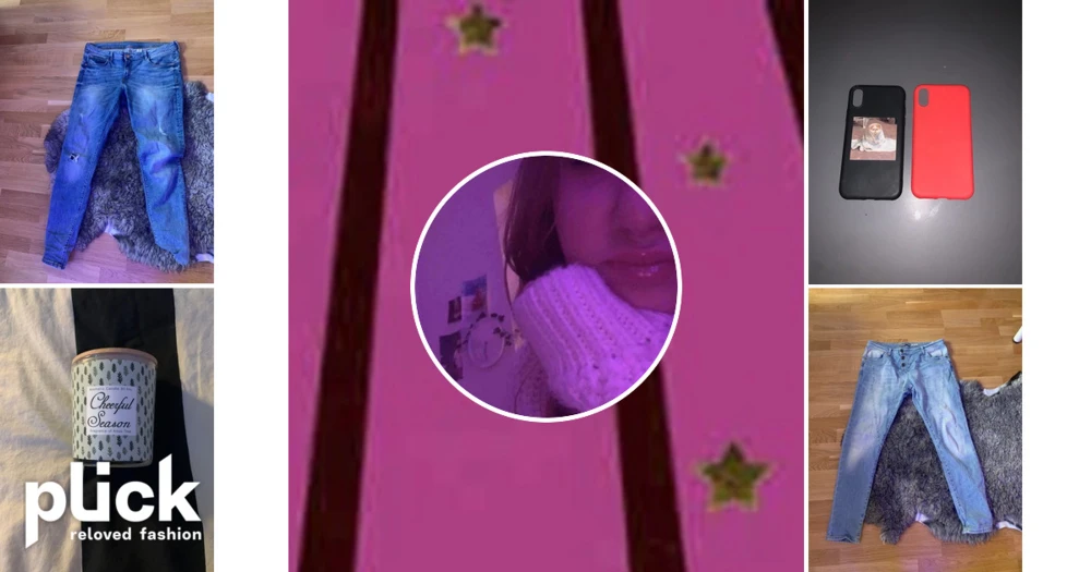 En hoodi. - Den är tvättad. Och har lila tryck.