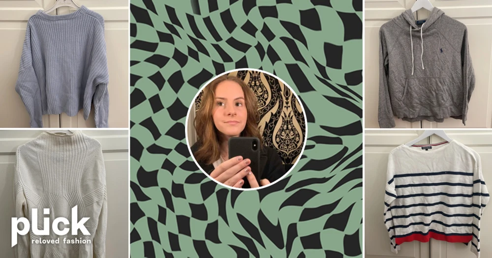 - Fin blÄ/grÄ tjocktröja i mjukt material. Jag Àr st S