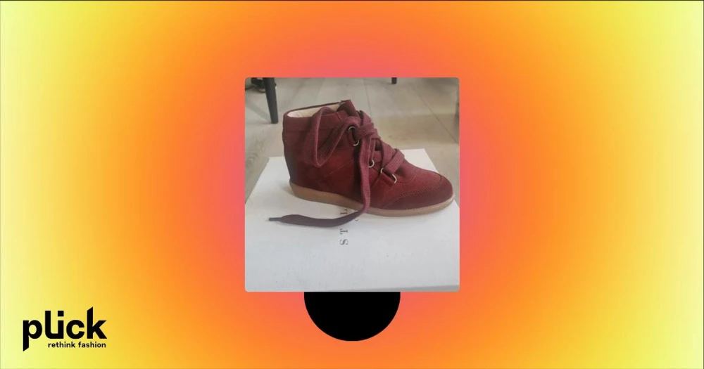 Vinröda sneakers med snörning - Snygga vinröda sneakers med inbyggd klack i mocka med snörning framtill. Liknar marant skorna! De har en bekväm gummisula och en stilren design som passar perfekt för höst och vår. Skorna är i mycket bra. Aldrig använda, Nypris 3000kr!