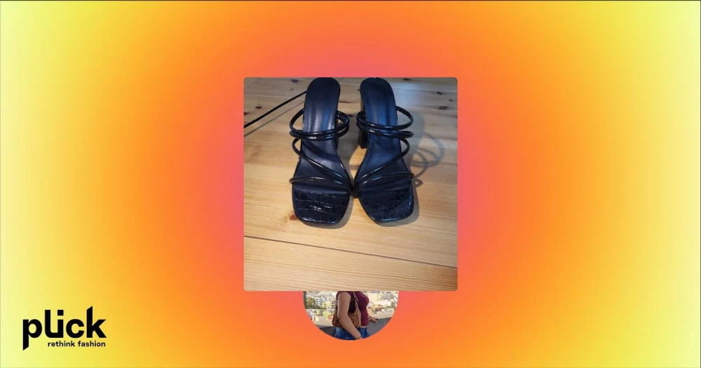 Svarta klackskor med remmar - Snygga svarta klackskor med flera tunna remmar och en fyrkantig tå. Skorna har en hög klack och en krokodilpräglad yta som ger en lyxig känsla. Perfekta för en kväll ute eller en speciell tillställning. P.S skorna har bara blivit använda en gång.