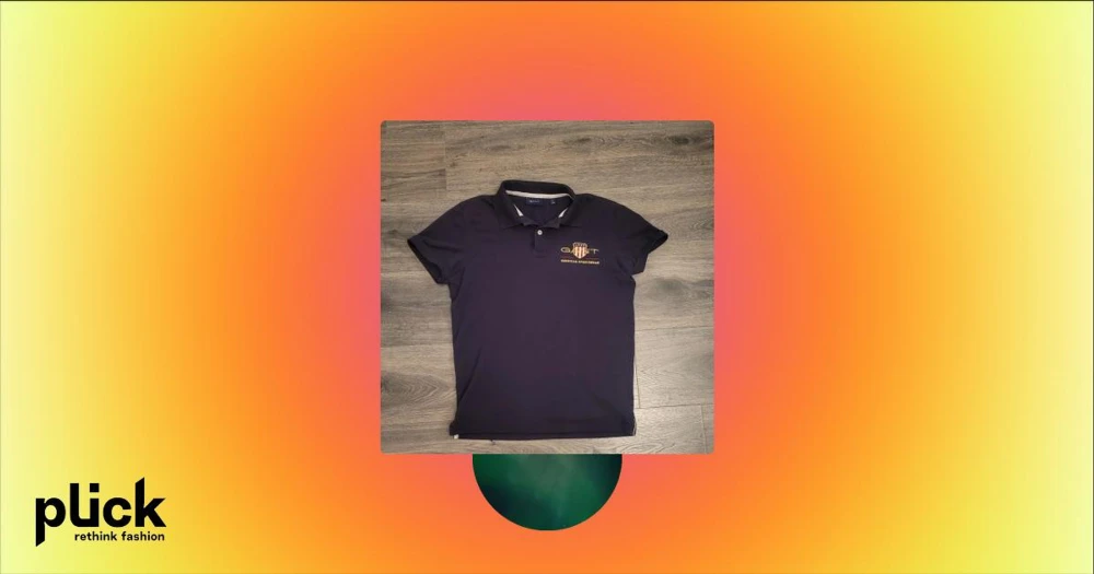 Mörkblå pikétröja från Gant - Säljer en mörkblå pikétröja från Gant med klassisk krage och knappar framtill. På bröstet finns ett broderat Gant-märke i gult och vitt med texten 'American Sportswear'. Perfekt för en sportig och stilren look. Knappt använd. Skriv om fler bilder eller frågor.