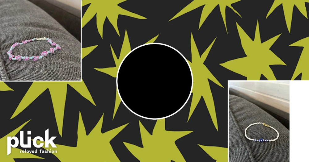 Armband med blomma - Somrigt armband av glaspärlor. Vita och marinblå pärlor samt guldigt spänne.