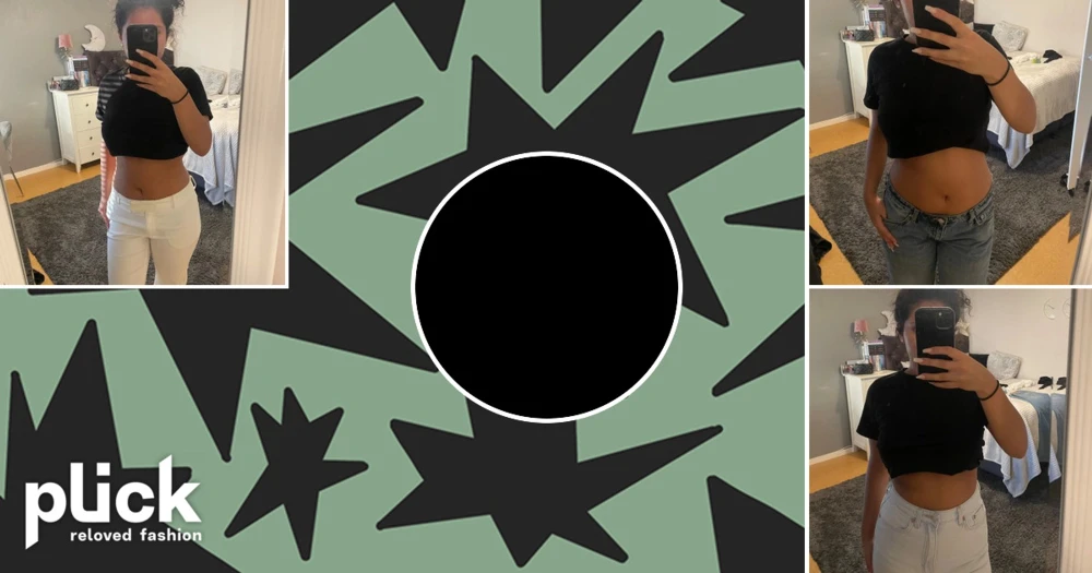 Svart croppad topp - Blåa lågmidjade jeans ifrån weekday.