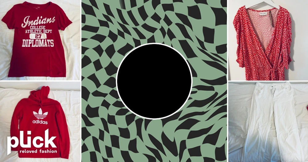 Rödprickig blus  - En tunn rödprickig blus som gÄr omlott över bröstet. Endast anvÀnd ett fÄtal gÄnger:)