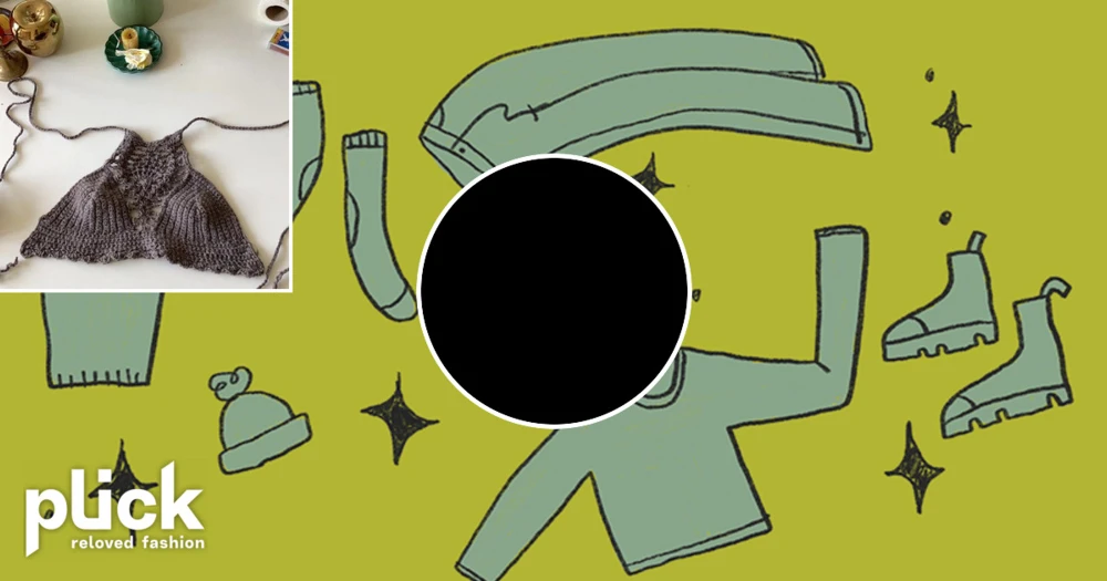 Virkad topp - Grå topp virkad av mig, har några små fel, men fungerar att ha på sig. Man snörar den själv och knyter i bak. Skön passform.