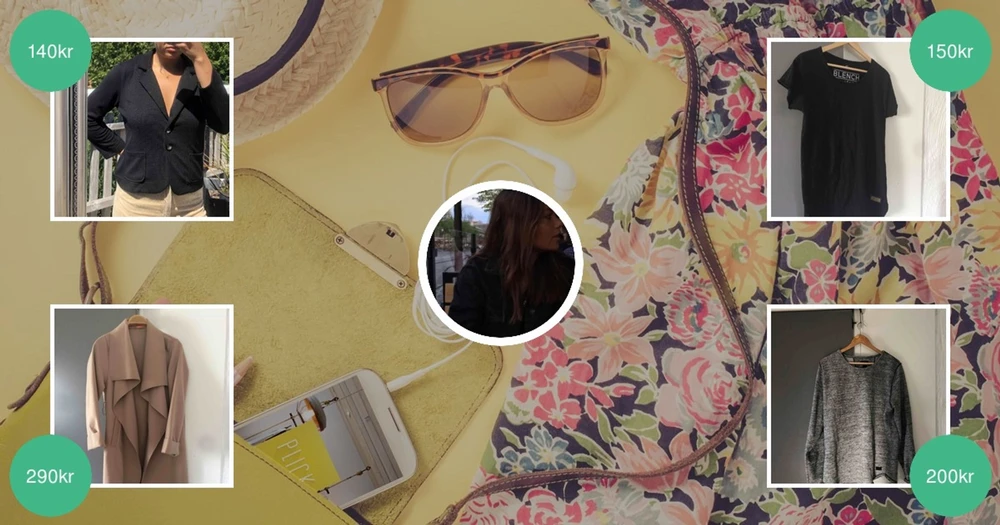 - En lite oversized kritstreckad kavaj, jag är storlek 36 och då är den lite stor, hittar inte någon storlekslapp men skulle gissa 38.