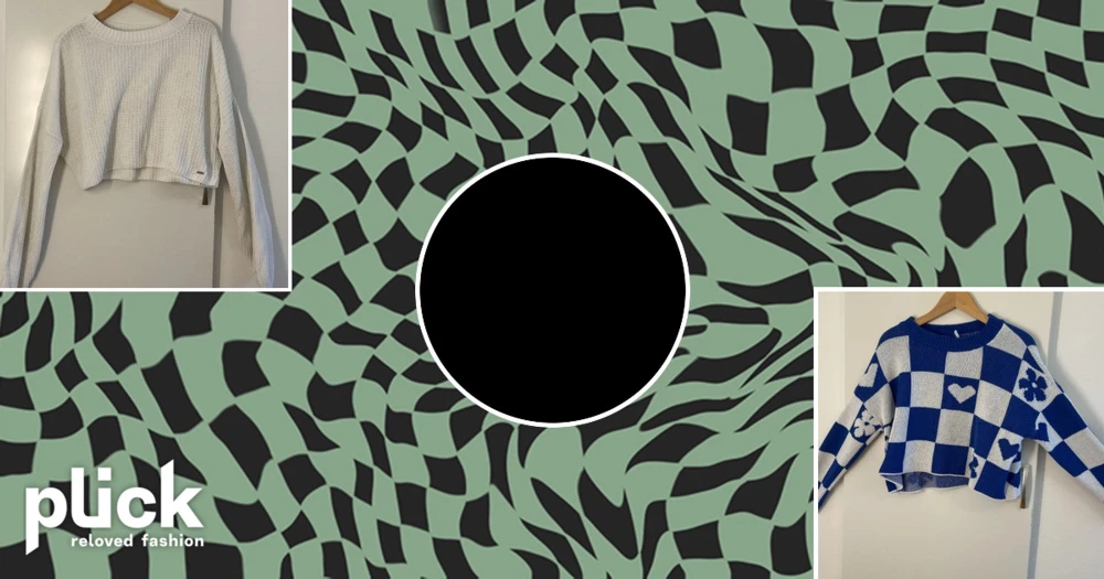En fint mönstrat vit och blå stickad tröja! - Tröjan är lite kort,använt bara tre gånger.