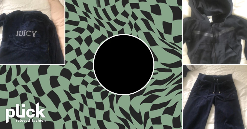 Juicy byxor - Marinblå juicy byxor i bra skick andvänd några gånger, storlek xxs men uppsydda til 146-152