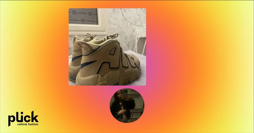 Beige Nike sneakers - Säljer ett par coola beige Nike sneakers med blå detaljer. Skorna har en chunky sula och tydlig 'AIR' text på sidan. De är i bra skick och perfekta för vardagsbruk. Storleken är US 3.5Y, vilket motsvarar ungefär dam 36. Använt 1 gång