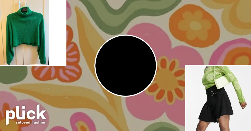 LÄngÀrmad tröja  - Grön tröja med blommor och smileys, storlek 38, sitter snyggt! AnvÀnd engÄng