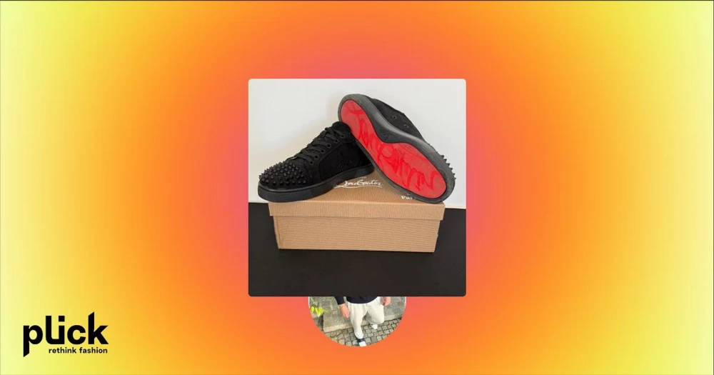 Svarta sneakers med nitar från Christian Louboutin - Snygga svarta sneakers i mocka från Christian Louboutin med coola nitar på tån. Skorna har en klassisk snörning och den ikoniska röda sulan. Perfekta för att ge din outfit en edgy touch.
