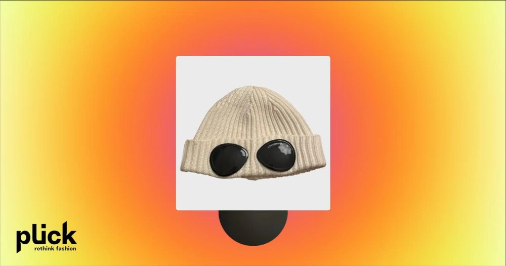 Vit ribbstickad mössa med glasögondetalj från C.P. Company - Snygg vit ribbstickad mössa från C.P. Company med unika svarta glasögondetaljer framtill. Perfekt accessoar för att sticka ut och hålla värmen under kyliga dagar. Tyvärr är lappen på mössan bort tagen för den var lite obekväm!!