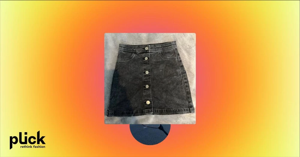 Svart jeanskjol med knappar från H&M - Snygg svart jeanskjol från H&M med raka linjer och silverfärgade knappar framtill. Kjolen har klassiska fickor och en cool tvättad look. Perfekt att matcha med en t-shirt eller hoodie för en chill stil.