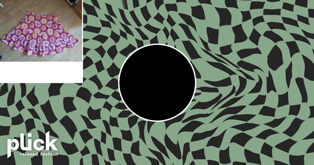 Kjol - Kjol av märket me&i. Rosa botten med mönster i vitt och orange.  95 % bomull, 5 % elastan. Öko-tex standard. Ca 50 cm lång.