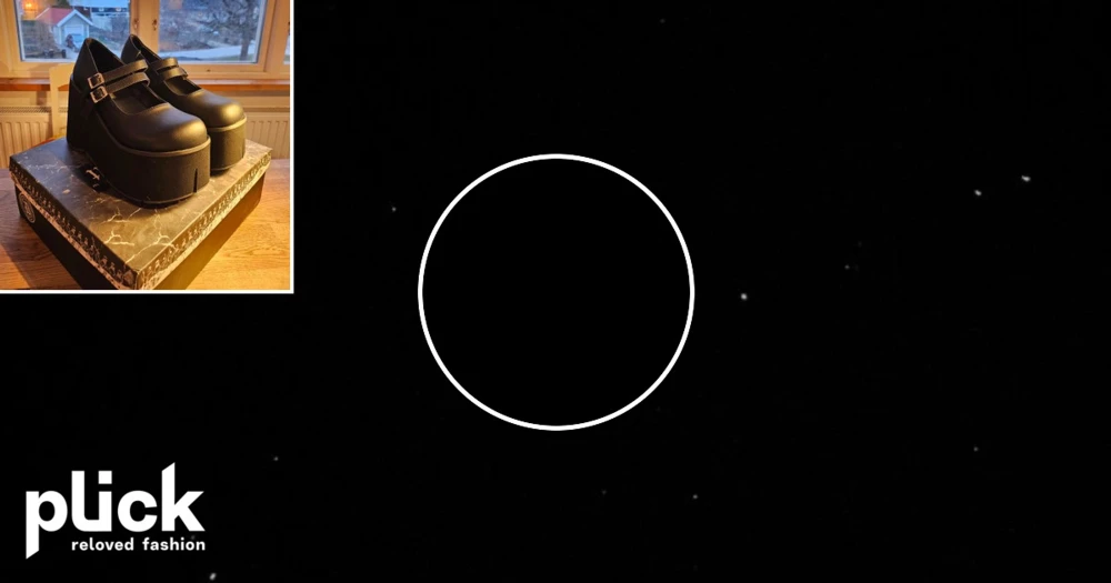Demonia Cult Shaker-23 - Säljer ett par svarta Mary Jane-inspirerade platåskor från Demonia Cult, använda en gång!!Skorna har chunky sula, bred rem med metallspänne och silverfärgade stjärnnitar på tån OBS . Saknar en stjärnnit, se bild 4, som ramlat av, pga detta säljer jag dom billigare! Tillverkade i veganskt läder! Nypris 1050 kr