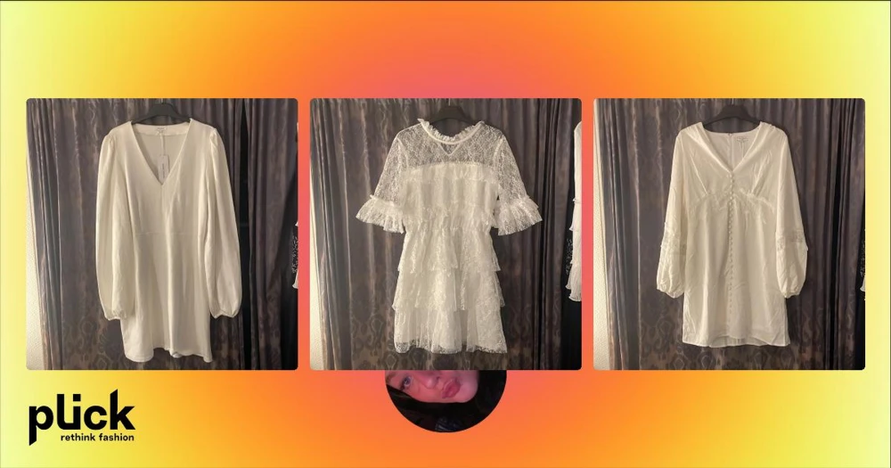 Vit v-ringad klänning från Stradivarius - Säljer en stilren vit klänning från Bubbelroom med v-ringning och långa puffärmar. Klänningen har en enkel, elegant design och är tillverkad i ett mjukt material som ger en fin passform. Perfekt för dig som gillar minimalistisk stil.