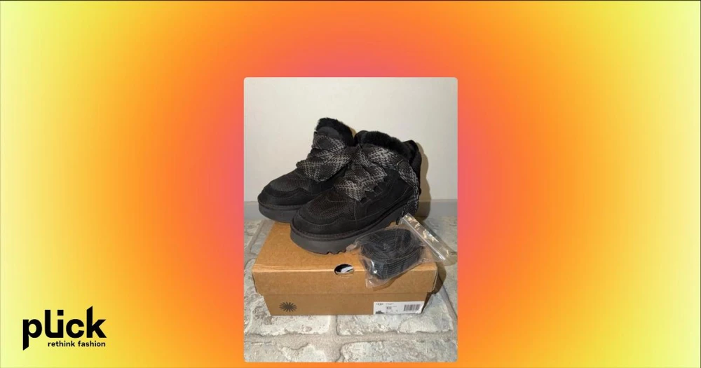 Svarta UGG Lowmell sneakers - Helt nya UGG sneakers i helsvart mocka och mesh med tjocka, mönstrade snören och fluffigt fårfoder runt öppningen. Grov sula för extra grepp och komfort. Perfekta för kyliga dagar och har en chunky, modern look. Extra skosnören medföljer. Skorna är provade inomhus men aldrig använda utomhus eller nersmutsade, säljer de då de var för små för mig. Allt i bild medföljer, priset går att diskutera vid en snabb affär.