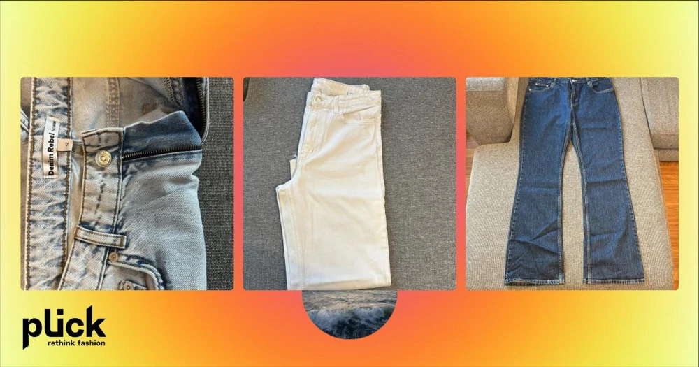 Ljusblå jeans från Denim Rebel, strl 42 - Snygga ljusblå jeans från Denim Rebel i rak modell med  fina detaljer och hål på ena benet. Klassisk femficksdesign, dragkedja och knapp framtill. Jeansen har hög midja och är tillverkade i robust denim för en cool och avslappnad look.Som Nya!