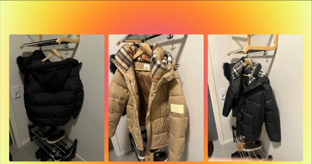 Svart pufferjacka från Burberry - Säljer en svart pufferjacka från Burberry med rutigt foder i grått, vitt och rött. Jackan har en stor huva med fuskpäls och dragkedja framtill. Märkeslogga på ärmen och praktiska fickor. Perfekt för kalla vinterdagar.
