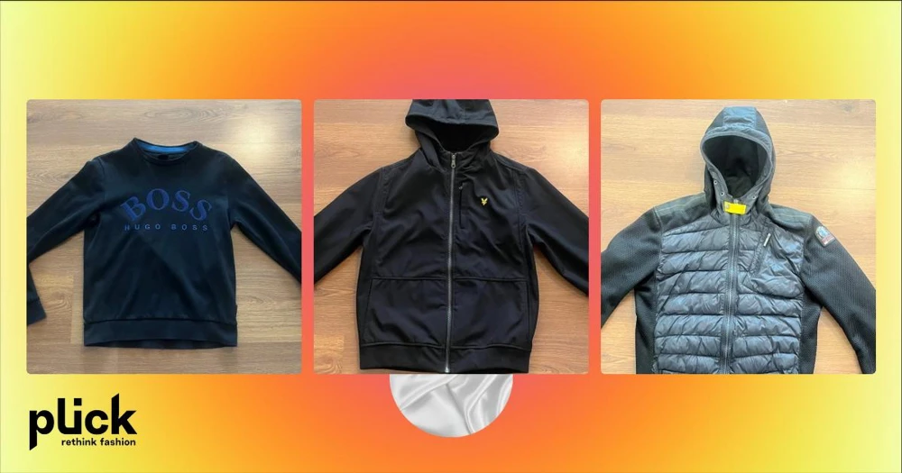Svart hoodiejacka från BOSS - Svart hoodiejacka från BOSS med gulddetaljer och dragkedja framtill. Jackan har huva, två fickor och dekorativa ränder på ärmarna. Perfekt för en sportig och stilren look.