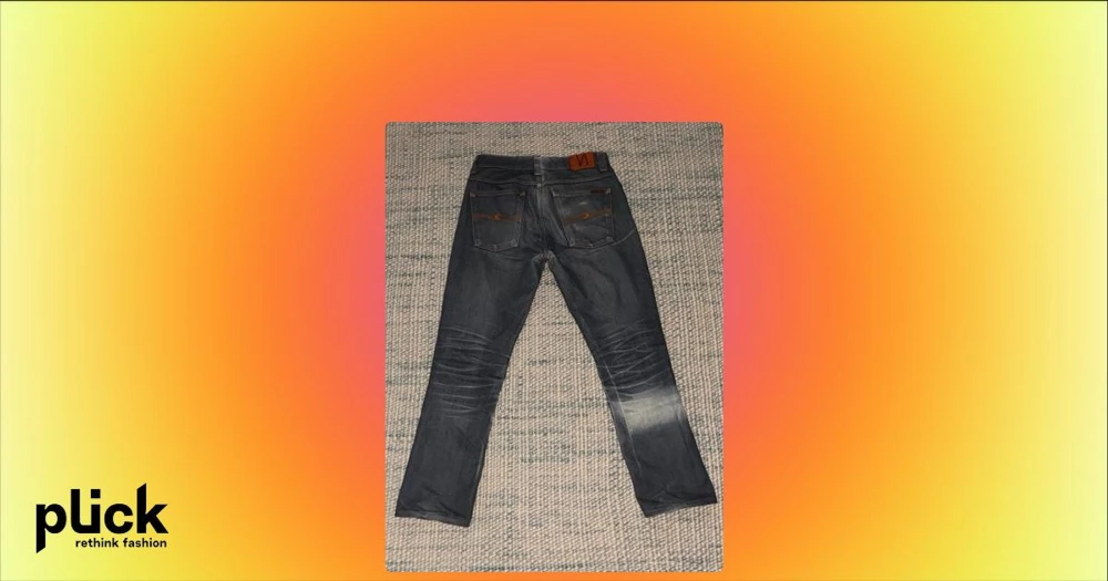 MörkblÄ jeans frÄn Nudie Jeans - Snygga mörkblÄ jeans frÄn Nudie Jeans med klassisk femficksdesign och orangea sömmar. Jeansen har en rak passform och coola slitningar vid knÀna och bakfickorna. Tillverkade i denim med lÀderpatch bak i midjan. Jeansen har professionellt sytts upp i benen frÄn W32/L32 till ungefÀr W32/L30. Jeansen Àr ocksÄ solblekta pÄ höger ben vilket ger dem en unik look