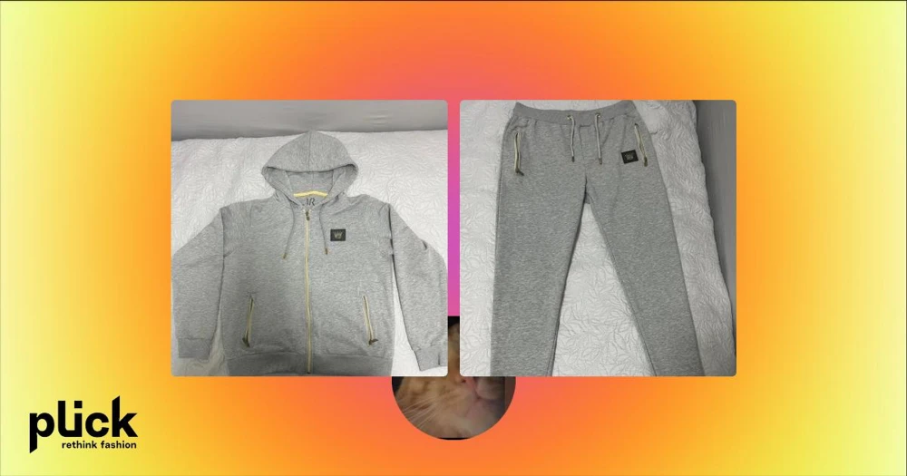 Grå hoodie med gulddetaljer från M.R - Snygg grå hoodie från M.R med gulddetaljer på dragkedjor och snören. Tröjan har huva, två fickor med dragkedja och en svart patch med krona på bröstet. Perfekt för chill dagar och streetstyle.. väldigt bekväm tröja och ganska sällsynt att se denna koftan utomhus.