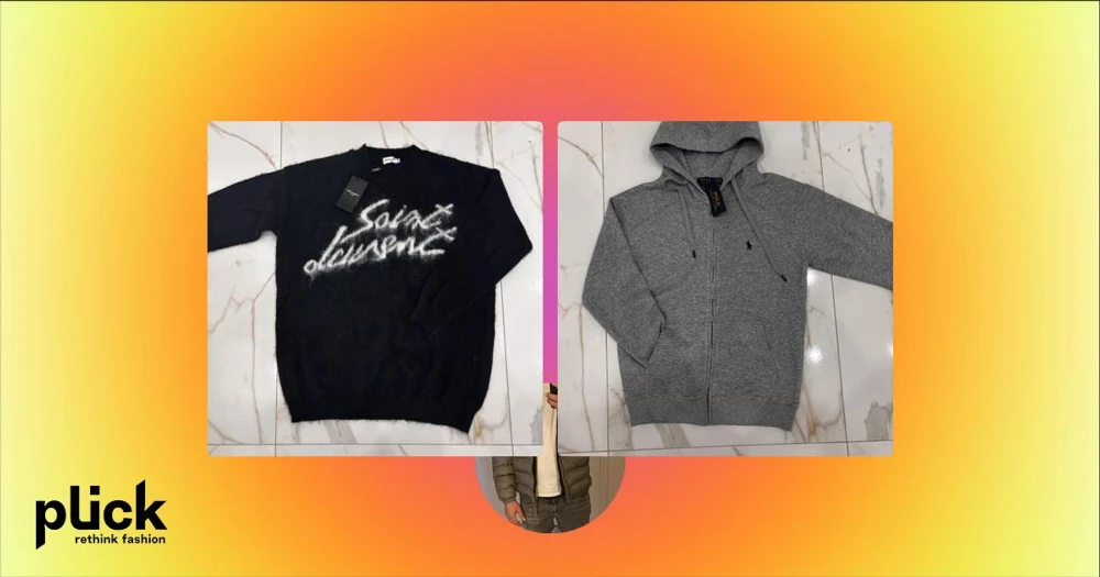 Saint Laurent stickad tröja - Svart stickad tröja från Saint Laurent med vit, fluffig logotyp framtill. Tröjan har rund halsringning och långa ärmar. Den är gjord i ett mjukt, lurvigt material som ger en cool och lyxig känsla. Perfekt för dig som vill sticka ut från mängden. Passformen på den är s/m.