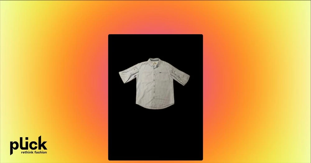 Randig skjorta Hampton Republic 27 - Snygg skjorta från Hampton Republic 27 med tunna blå och vita ränder. Klassisk krage, knappar framtill och broderad logga på bröstet. Ärmarna är trekvarts och kan fästas med knapp. Tillverkad i mjuk bomull som känns skön mot huden.