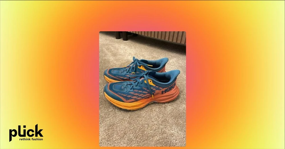 Hoka Speedgoat 5 blå och orange sneakers - Säljer ett par Hoka Speedgoat 5 sneakers i blått och orange med coolt mönster och robust Vibram-sula. Skorna har snörning, mesh-överdel och extra grepp för terräng. Har använt dessa två gånger. De är välidgt behagliga att springa i, men de är dessvärre för stora för mig. Nypris närbjag köpte de låg på ca 3000kr, säljer de nu för 1800kr.