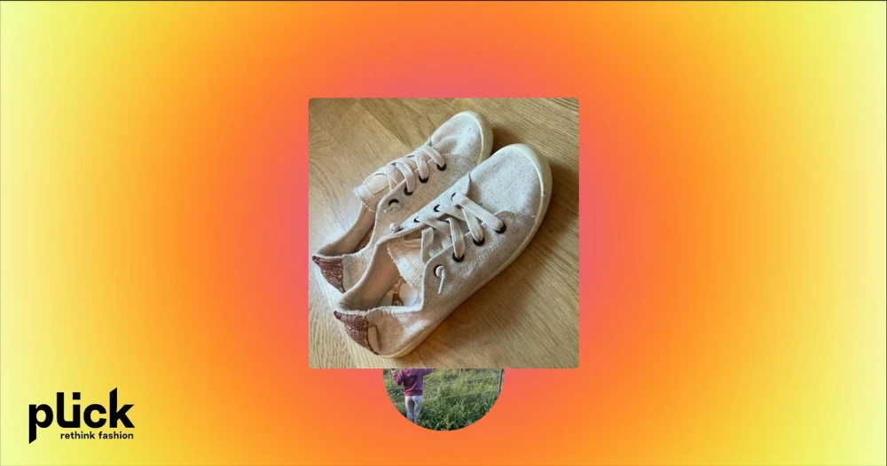 Beige sneakers med snörning och brun detalj - Snygga beige sneakers med breda snören och bruna detaljer vid hälen. Skorna har rund tå och platt sula, tillverkade i textilmaterial med dekorativ söm baktill. Perfekta för en avslappnad stil.