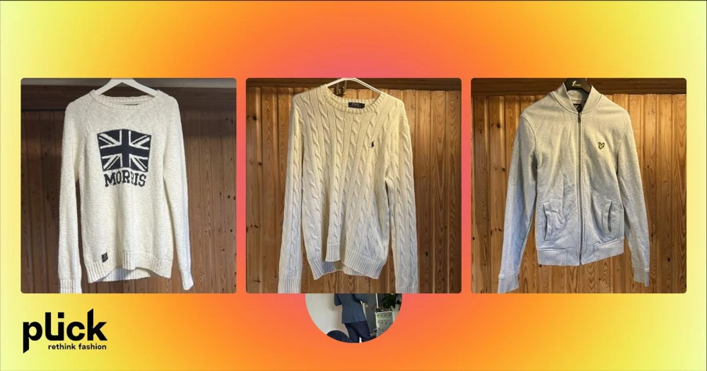 Vit stickad tröja från Morris - Vit stickad tröja från Morris med Union Jack-flagga och texten 'Morris' på bröstet. Tröjan har rund hals, ribbade muddar och är långärmad. Perfekt för dig som gillar klassisk brittisk stil och vill ha något som sticker ut.